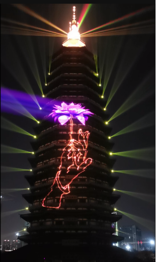 常州天寧寺塔,通過“真激光”投影技術和全景投影技術,將佛陀“拈花微笑”的典故展現得淋漓盡致。配合光影講人文故事,已經成為新的時尚,成為博物館、歷史遺跡等向大眾展現歷史文化、人文風情、科學技術的新載體,讓歷史文化從“展覽臺”走向大眾。