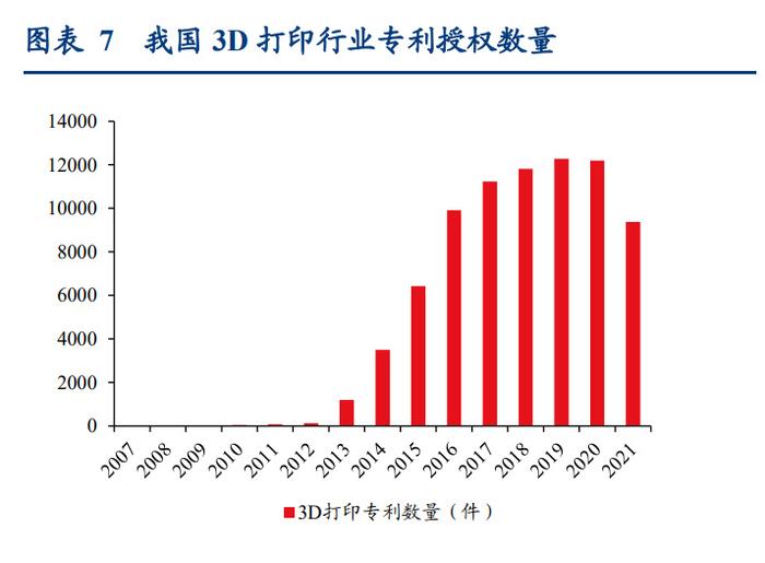 國家對 3D 打印支持力度大,助力制造業轉型升級。我國相關部門發布了許多有關 3D 打 印方面的政策以引導行業發展。2017 年,國家發改委發布的《戰略性新興產業重點產品 和服務指導目錄》將 3D 打印列為戰略性新興產業重點產品和服務。2020 年,國家標準 化管理委員會、工信部、科學技術部、教育部、國家藥品監督管理局、中國工程院六部門 聯合印發了《增材制造標準領航行動計劃(2020-2022 年)》。近些年,國家相關部門又發 布了《“十四五”智能制造發展規劃》、《“十四五”國家重點研發計劃重點專項 2022 年度 項目申報指南》等政策文件支持行業發展。