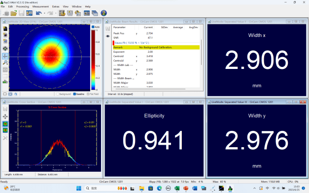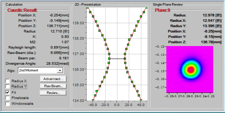 圖-5 公大激光1000W單模連續綠光光束質量測試 M平方=1.07
