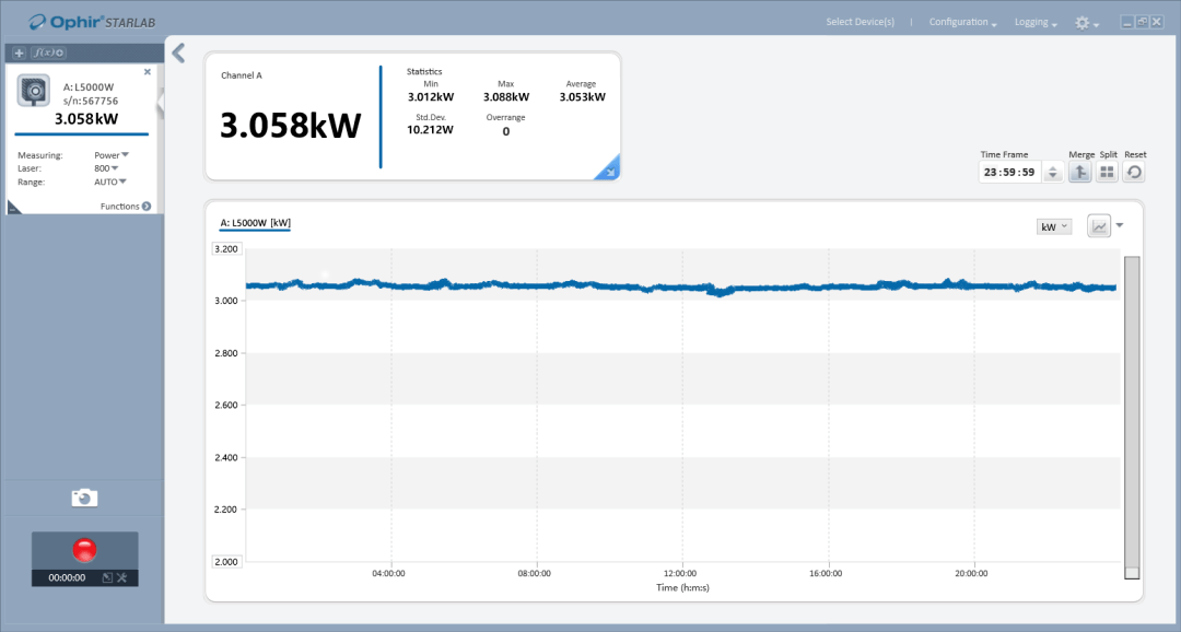圖-7 3000W多模光纖綠光24小時功率穩定性