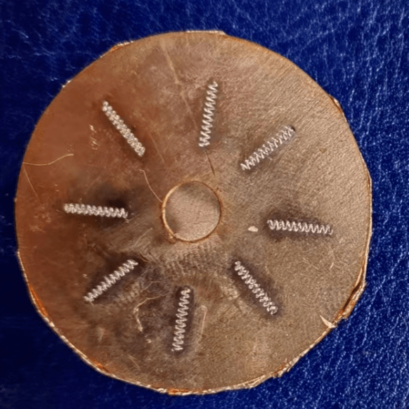 (1)大圓柱電池負極集流盤焊接,焊接方式:銅-銅箔疊焊;焊接材料:0.2mm紫銅和30層6um銅箔: