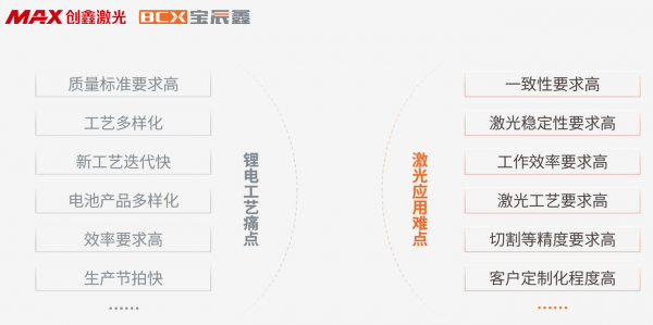 當(dāng)前,全球新能源汽車(chē)產(chǎn)業(yè)已進(jìn)入加速發(fā)展新階段,對(duì)動(dòng)力電池技術(shù)創(chuàng)新、質(zhì)量性能等提出更高的要求。接下來(lái),動(dòng)力電池行業(yè)將邁入從“有沒(méi)有”到“好不好”的新階段。動(dòng)力電池產(chǎn)業(yè)的前半程,已經(jīng)可以滿足市場(chǎng)的基礎(chǔ)需求。動(dòng)力電池產(chǎn)業(yè)的后半程,是引領(lǐng)市場(chǎng)需求,從有到好,與產(chǎn)業(yè)一起邁向高質(zhì)量躍升發(fā)展的新階段。要在動(dòng)力電池的生產(chǎn)制造中實(shí)現(xiàn)高標(biāo)準(zhǔn)制造,無(wú)論是鋰電工藝本身還是激光應(yīng)用落地都存在著許多亟需解決的問(wèn)題:動(dòng)力電池的質(zhì)量標(biāo)準(zhǔn)要求高,工藝多樣化,新工藝迭代快,電池產(chǎn)品多樣化等,都給電池生產(chǎn)帶來(lái)了諸多挑戰(zhàn)。在激光應(yīng)用落地過(guò)程中,一致性、穩(wěn)定性、效率、精度等要求高也是工藝難點(diǎn)。