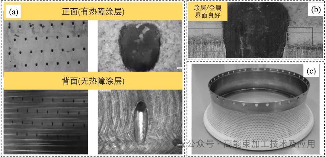 (c)帶熱障涂層火焰筒氣膜孔一次性制孔實物