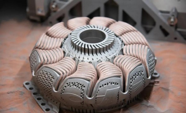 一款采用SLM技術(shù)打印的一體化鋼-銅散熱器,由高導(dǎo)熱系數(shù)銅合金和結(jié)構(gòu)材料制成的多材料部件在熱管理方面具有廣泛的應(yīng)用。熱交換器和冷卻元件常用于數(shù)據(jù)中心、汽車、化學(xué)工業(yè)、燃燒裝置、模具、鑲件等。對于注塑行業(yè)來說,冷卻時間的縮短可以加快整個生產(chǎn)周期。對于較小的模具鑲件,隨形冷卻通道的空間非常有限,因此在鑲件內(nèi)部使用銅材料成為加速散熱的唯一方法。