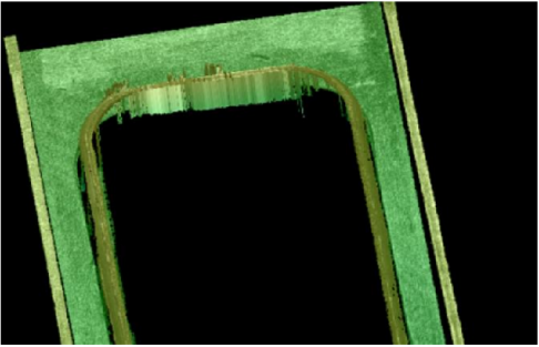 選定被測量區域,在區域內每一段間隔抽取一個輪廓,每個輪廓都可以測量輪廓上殼口和頂蓋之間的高度差。在范圍內可以測得每個輪廓上殼體到頂蓋之間的高度差。
