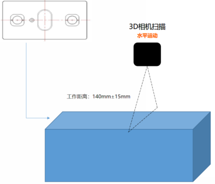 一套 3D 相機安裝在運動軸上,進行壓裝高度、間隙檢測;沿產品長邊中間區域運動掃描檢測。