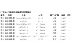 12 月 14 日深圳冷作模具鋼指導(dǎo)報(bào)價(jià) 城市 品名 規(guī)格 材質(zhì) 鋼廠 / 產(chǎn)地 價(jià)格 漲跌 深圳 冷作模具鋼 34-60*150-320 Cr12 長(zhǎng)特 12800 - 深圳 冷作模具鋼 Ф38-75 Cr12 長(zhǎng)特 12800 - 深圳 冷作模具鋼 34-60*150-320...