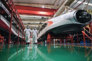 在廣東江門火車站一側(cè)的中車廣東軌道交通車輛有限公司廠房?jī)?nèi),來自香港、深圳、廣州等地的地鐵車輛在偌大的車間一字排開等待維護(hù)與檢修;總裝車間內(nèi),數(shù)節(jié)城際列車車廂即將下線發(fā)往各地。廠區(qū)附...