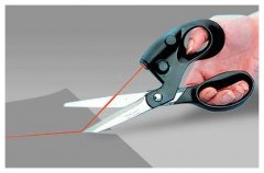 這把剪刀的刀把上嵌有一個激光發(fā)射器,如圖所示,發(fā)射出的激光投射在待剪物體表面,為使用者指明了剪刀前進的方向。不曉得這算不算軍用激光制導技術在民用產品上的首例應用。...