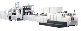 展出設備名:全自動方底紙袋機:該設備以原紙或印刷好的紙為原料,一次完成制手把、貼手把、袋口反折、袋筒上邊膠、原料成筒、底部壓痕、袋底成型、出袋,整機由PLC控制,運行狀態由觸摸屏顯示和控制,可生產多種規格的手提紙袋,適用于各種食品袋和購物袋。