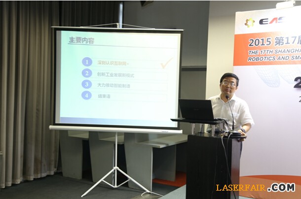 7月14日展會開幕首日,在“2015智能制造及智能工廠實施高峰論壇“上,中國機械工業聯合會顧問 原國家機械工業部總工程師 朱森第發表了題為“智能制造—— 《中國制造2025》的主攻方向 ”的演講。他強調了推進智能制造的重點行動,如建立協同推進智能制造聯合體,包括整體解決方案、ERP、MES、精益生產、工藝研究、工業機器人、智能裝置等提供商,對大批量生產、多品種小批量、單件生產、流程型制造等不同生產方式開展不同示范項目,不同工藝、不同工序的實現自動化生產的技術路線與途徑以及根據不同行業制訂智能制造總體方案。