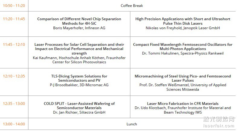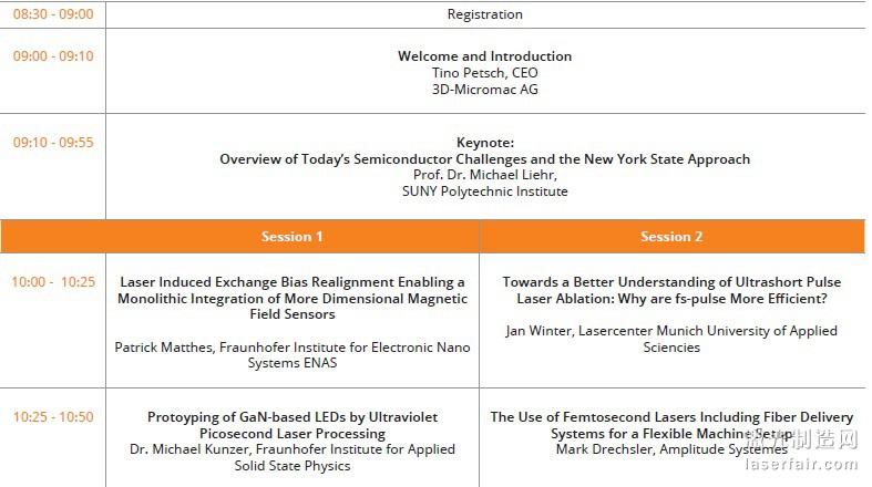 會議的主題主要是聚焦于激光微加工和柔性薄膜系統的制造技術,更多的論題包括: