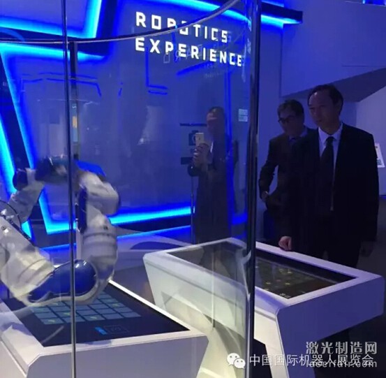 圖:中國機械工業聯合會執行副會長中國機器人產業聯盟執行理事長兼秘書長宋曉剛先生在安川電機負責人陪同下參觀安川電機工廠
