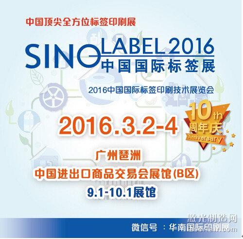 2016年3月2-4日,【中國國際標簽展(Sino-label 2016】喜迎“十年盛世“,璀璨升級,首次移師廣州.中國進出口商品交易會展館B區。