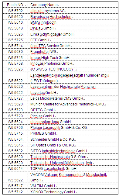 由德國聯邦經濟及科技部 (BMWi)與德國經濟展覽和博覽會委員會 (AUMA)組織的德國展團,已經連續九屆參加慕尼黑上海光博會。今年將有29家德國企業亮相并展現來自“德國制造”的高科技和創新產品。