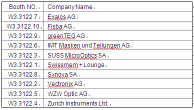 瑞士展團主辦方“瑞士機械電子冶金協會光電分會(Swissmem)”是瑞士光電光學系統及組件開發商、制造商和供應商的產業聯盟。它匯集了36家瑞士公司和6所高等院校及產業研究機構。其中一些企業將在瑞士展團進行展出。瑞士光電產業為輸出導向型,全年成交量有90%來自國外。瑞士公司不斷創新,一直以光電領域的出色技術和產品而聞名,幾十年來始終如一為國際市場提供高質量產品。