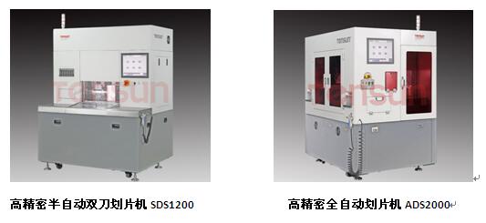 而騰盛的另一項(xiàng)引以為傲的技術(shù)就是他們的切割技術(shù),其劃片機(jī)可以有效實(shí)現(xiàn)晶圓切割,將一個(gè)晶圓上單獨(dú)的die通過(guò)高速旋轉(zhuǎn)的金剛石刀片切割開來(lái),形成獨(dú)立的單顆的晶片,為后續(xù)工序做準(zhǔn)備。晶圓切割需要用到晶圓切割機(jī)設(shè)備,晶圓切割也需要用到特定的切割機(jī)刀片,騰盛目前已經(jīng)推出了晶圓切割機(jī)設(shè)備ADS2000、SDS1000和SDS1200,廣泛應(yīng)用于半導(dǎo)體晶圓切割、陶瓷薄板切割、藍(lán)寶石玻璃切割等。此外,騰盛目前也提供貼膜機(jī),主要是用來(lái)貼UV膜和藍(lán)膜,在貼膜的過(guò)程中要加60℃~80℃溫度,使藍(lán)膜能牢固粘貼在晶圓上(一般實(shí)際加工過(guò)程時(shí)貼膜后放入烘烤箱烘烤),防止切割過(guò)程由于粘貼不牢造成die飛出。