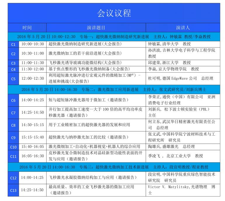 會議方向ALAT 2016中國超快激光與微納制造大會將包含4個主題:(1)超快激光微納制造研究新進展;(2)激光微加工應用新進展;(