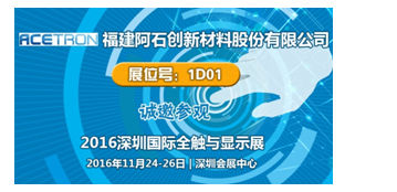 2016年11月24日-26日2016深圳國際全觸與顯示展將在深圳會展中心盛大開幕。屆時,歡迎業界同仁來到福建阿石創新材料股份有限公司位于深圳國際會展中心的1D01號展位參觀與咨詢!
