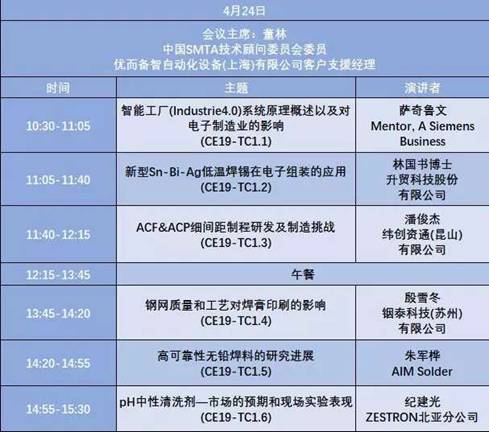 2019年4月24-25日, SMTA將在上海世博展覽館6號會議室舉辦SMTA華東高科技技術研討會。研討會將包括行業中最熱門的話題,如:先進封裝及元件、裝配,、商業與供應鏈、新興技術、 環保應用 (軍工、航天、汽車、工業、石油天然氣)、 基板技術、制程控制,在如今智能制造新時代,這無疑是場新興技術的交流盛宴。