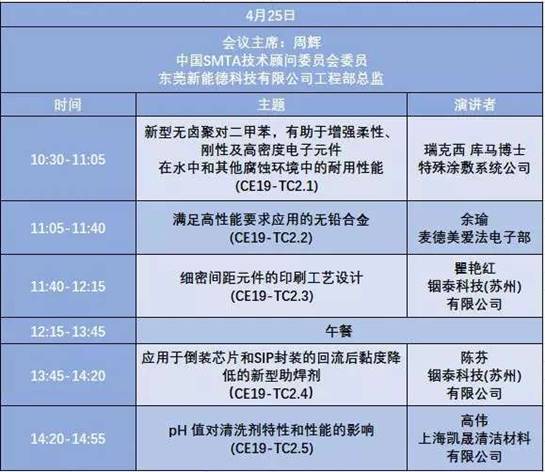 ?   裝配:01005/03015元件及裝配、3D裝配、增材制造、SMT粘膠、替代焊料合金、BGA/CSP裝配、底部端子元件、空腔基板裝配、清洗、敷型涂覆及注膠、基板聯接裝配、DFX和零缺陷設計、基板上芯片直裝、點膠與底部填充膠、環氧樹脂助焊劑、工廠設施布置、無鹵與零鹵素、頭枕缺陷、翹曲相關錫點缺陷、高熔點焊料、激光焊接、無引腳陣平面列封裝、無鉛焊接及可靠性、低溫焊接、小批量與原型機、無潤濕空焊、封裝堆疊裝配、器件廢除、貼裝、印刷、回流焊接與波峰焊接、精密復雜器件返修、返修可靠性、機器人焊接、選擇性焊接、噴涂式點錫膏、焊錫膏與焊點空洞、非焊接式互聯、供應工程、熱壓打線、底部填充、邊角固定及聚合物強化、汽相焊接以及良率改善。