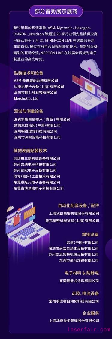 超過半年的積淀準備,ASM、Mycronic 、Hexagon、OMRON 、Nordson等超過25家行業領先品牌供應商已確認將于7月31日NEPCON LIVE在線展會開啟年度首秀。通過在線平臺呈現創新的技術、 革新的設備、精彩的互動交流,NEPCON LIVE在線展會將成為電子制造業的高光時刻。