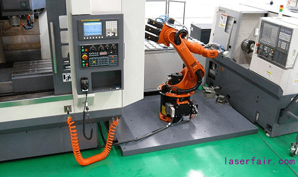 隨著數(shù)控設(shè)備的普及與用人成本不斷升高,諸多工廠開啟了一人多機(jī)的操作模式(即一人操作2-4 臺數(shù)控設(shè)備),該模式將會促進(jìn)工廠引進(jìn)工業(yè)機(jī)械手臂提高生產(chǎn)協(xié)同性,這勢必會帶動加工中心自動上下料工作站市場需求。