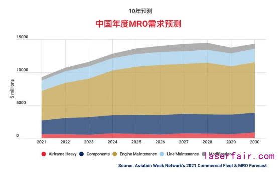 據航空媒體Aviation Week發布的一項報告稱,預計到 2022年,中國航空維修市場規模將接近100億美元,年復合增長率達8.6%,高于全球平均水平。未來十年,受益于市場上新機型、新發動機和新部件的產生,和老舊破損飛機和發動機的替換需求,全球航空維修市場仍蘊藏巨大商機。