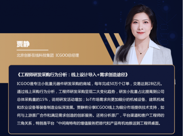4.賈靜 ICGOO總經(jīng)理:《工程師研發(fā)采購(gòu)行為分析:線(xiàn)上設(shè)計(jì)導(dǎo)入+需求創(chuàng)造途徑》
