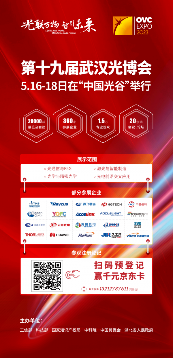 2023年5月16-18日,第十九屆“中國光谷”國際光電子博覽會暨論壇(以下簡稱“武漢光博會”)將于中國光谷科技會展中心舉辦。