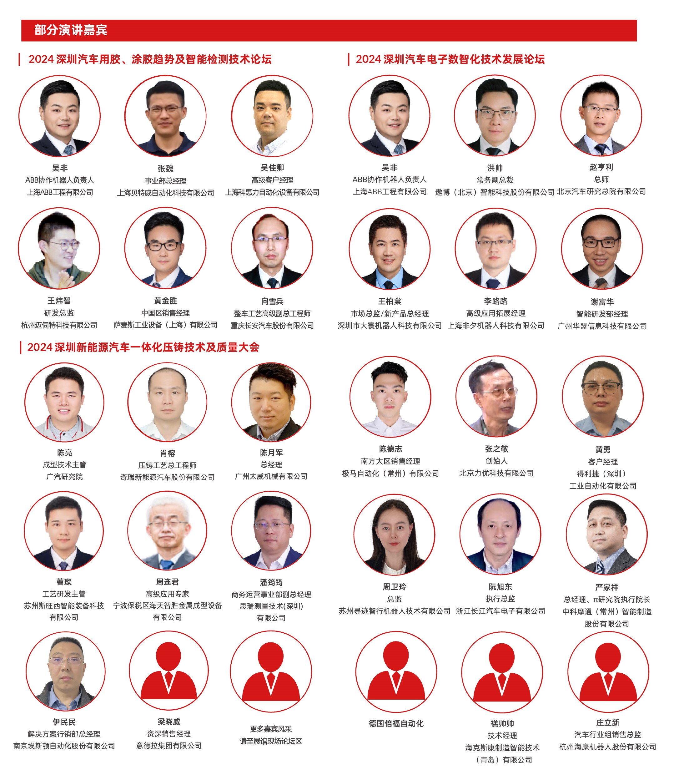 來自蔚來、奔馳、比亞迪、一汽、特斯拉、理想等頭部企業的行業領軍者都將到場,濟濟一堂,群賢畢集。旨在通過深入挖掘新能源三電與智造技術、汽車用膠涂膠趨勢及智能檢測技術、一體化壓鑄技術、汽車電子數智化技術的創新潛力與發展前景,為汽車工程及工業裝配技術人員構筑一個全新的聯接平臺。