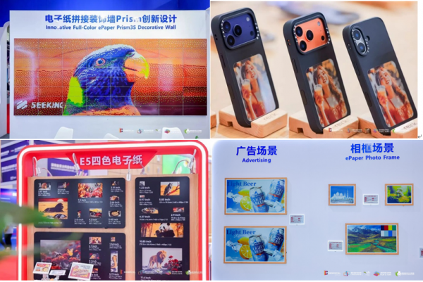 電子紙展區,打造了近千平的電子紙生態展區,集中展示大尺寸商顯、彩色電子紙、數字價簽、智慧學習機、電子紙模組、廣告看板、AI交互、手機背殼、數碼相框、教育軟件、系統解決方案、電子紙配件等創新成果;