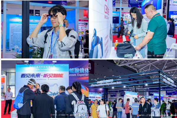 AI+AR智能眼鏡體驗區,聚焦下一代人機交互,融合了AI與微顯示技術,李未可、谷東智能、維深信息、大朋VR、易天科技、形意智能等展示輕量化全彩光波導、Micro OLED微顯示、雙目SLAM與手/眼追蹤、多模態語音-視覺交互、AI字幕與同傳等技術產品,加速AI+AR眼鏡從研發走向規模化應用。